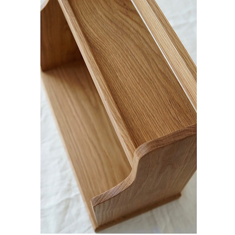 上段は転落防止と、物を立てて飾れるよう手前の板を少し高めにしています。